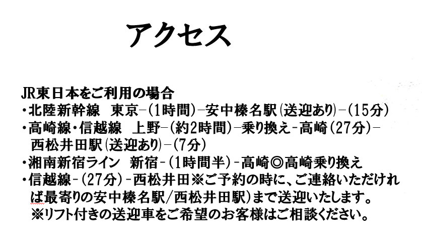 アクセス Access 住所; 〒379-0211 群馬県安中市松井田町上増田670 Tel Fax; 027-393-0655 INFOMATION スタッフ紹介森の家の歴史 森の家通信/紹介記事 観光案内/リンク 会員加入/ご寄付のお願い メールフォーム でのご予約 電話でのご予約027-393-0655 Matsuida Morinoie バリアフリーペンション まついだ森の家 〒379-0211 群馬県安中市松井田町上増田670 TEL/FAX 027-393-0655 matsuida.morinoie@gmail.com Barrier-free pension Matsuida Morinoie Zip code:379-0211 670 Kamimasuda Matsuida-town Annaka-city Gunma-prf. JAPAN
